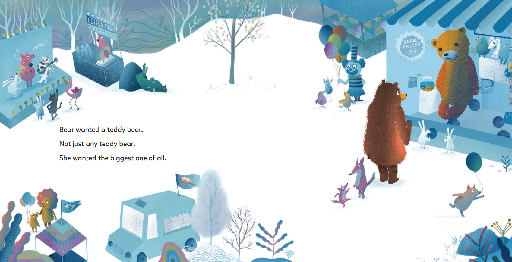 Bärin liebt es, groß zu sein! Auf dem Jahrmarkt möchte Bärin einen Teddybären gewinnen, der so groß ist wie sie selbst. Stattdessen bekommt sie einen Fisch. Einen ganz kleinen Fisch. Bärin ist so groß und Fisch ist so klein, dass Bärin befürchtet, sie hätten nichts gemeinsam.